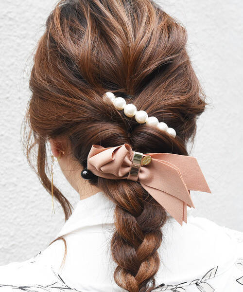 クリップだけでお団子を作るのが難しい場合は、インナーとの併用をオススメします。 トップからサイドにかけて編み込みを作ります。 残りの髪を インナーヘアアクセ でふんわり大きなお団子にして、毛先をクリップで留めれば完成。 お団子状にまとめて、残った毛先をゴム周りに巻きつけてからバナナクリップをつけるとラクに作ることができますよ。 (5)お団子+バナナクリップ アクティブに見せたい時 におすすめバンスクリップ・髪留め・ヘアアクセサリー・ポニーテールクリップ。リボンバンスクリップ クリップ ポニーテールクリップ お団子クリップ シルク 結婚式二次会ヘアアクセサリー 髪止め ヘアアクセ レディース アクセ アクセサリー ヘアアクセ バナナクリップ なまとめ髪
